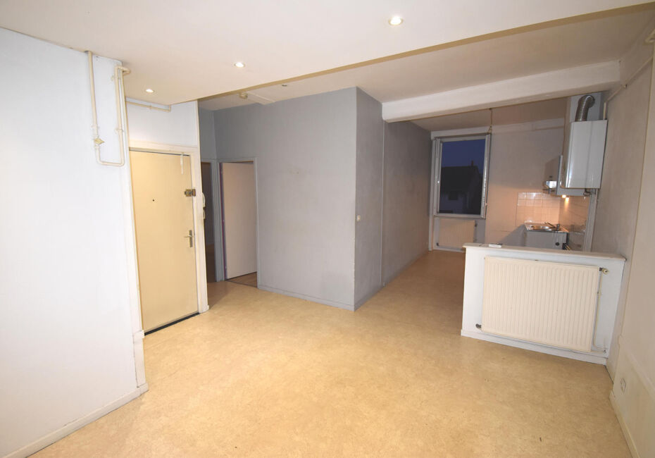 Duplex T3 avec travaux de 66 m² carrez (74 m² au sol) au 3ème étage sur 3 d'un immeuble situé fin de la Rue D'Anse, début de le Rue Nationale (proche de la gare et de tous les commerces). Cet appartement est libre d'occupation. Cet appartement est actuellement configuré en T2 de 39.90 m² mais est vendu avec les combles aménageables...